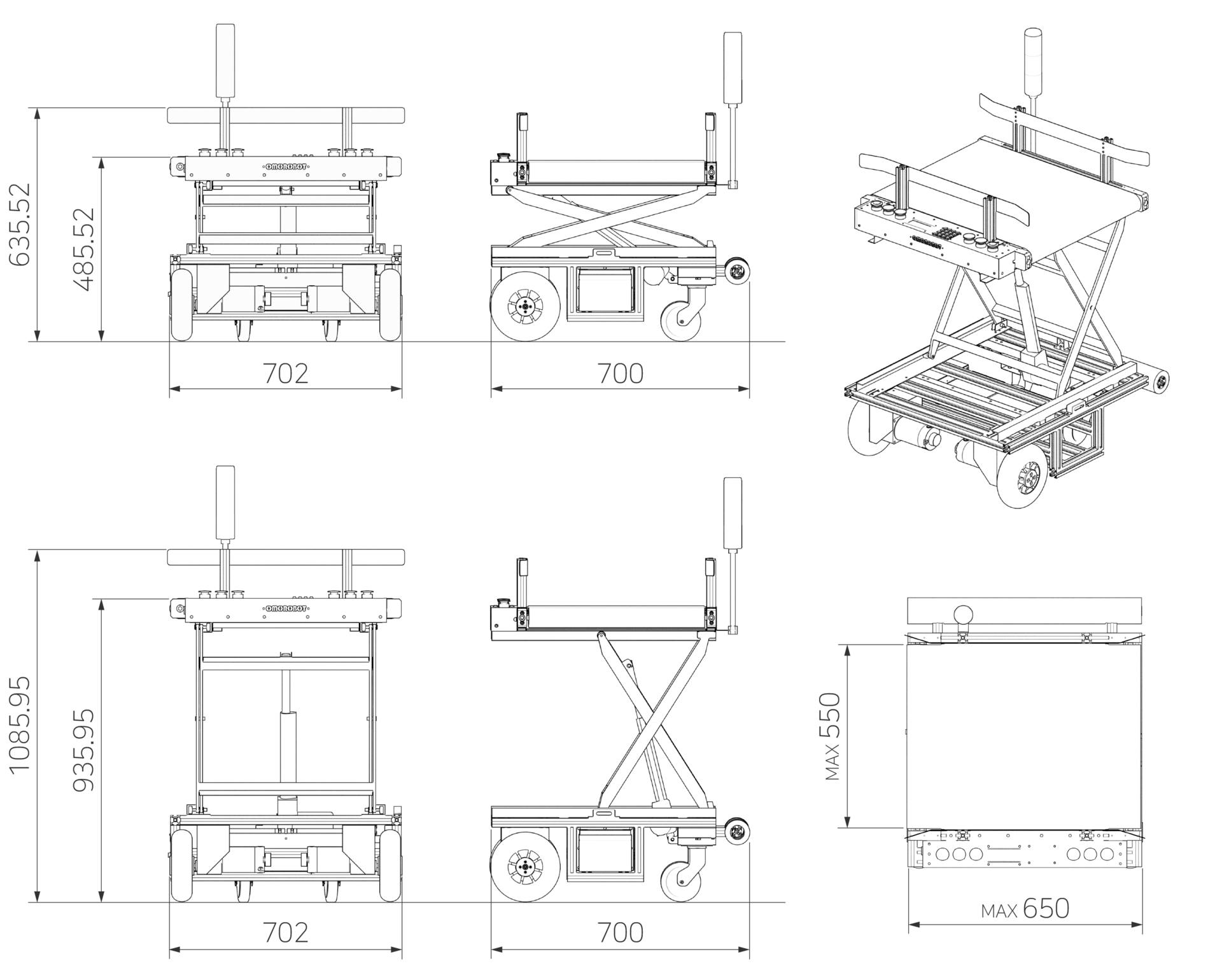 コンベヤの高さを自動で調整できるため、 高さの異なるテーブルや設備にもスムーズに搬送が可能です。