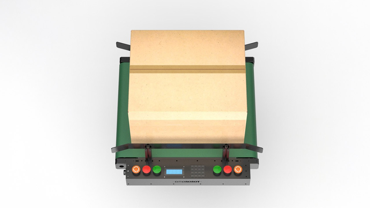 床面センサーで積載位置を正確に検出し、電動コンベヤを利用して製品を自動で積載します。オペレーターが軽く押すだけで、
