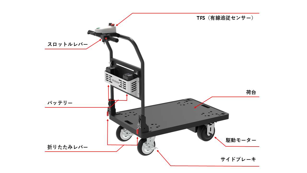 ② 折りたたまれているカート操作部を広げます。