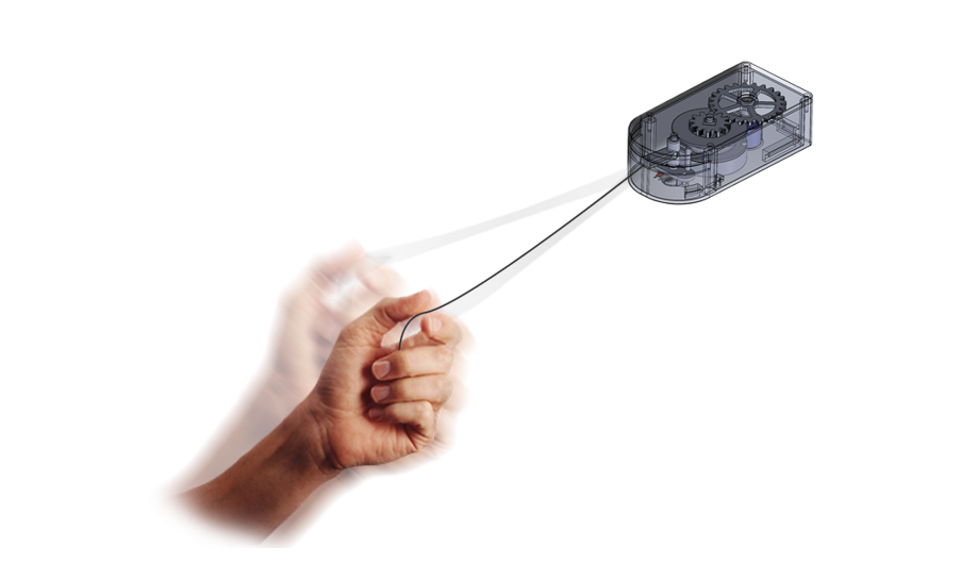 ユーザーが動かすワイヤーの方向と張力を検知し、ロボットが自然に追従するよう制御します。